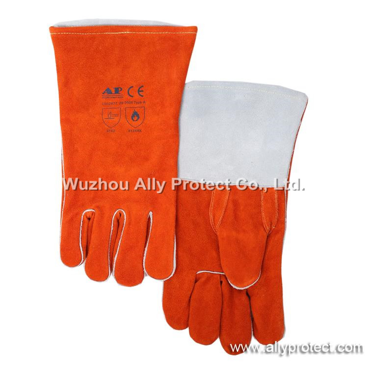 Tough cowhide leather stick/MIG gloves with straight thumb for work sensitive and thumb strap for more durability.