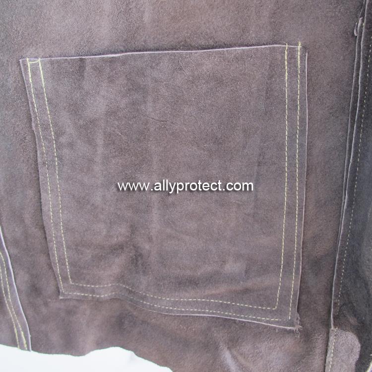 前胸防護(hù)條設(shè)計(jì),防止燒焊飛濺物濺入衣內(nèi),雙層皮設(shè)計(jì)防止撕脫。