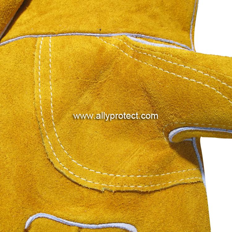 AP-0909 金黃色高檔牛二層皮燒焊手套